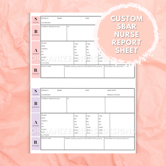 Custom Printable Nursing Template: Concept Map, Nurse Report Sheet or Pharm Template