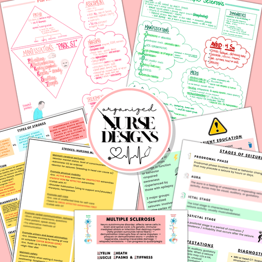 Parkinson's, Multiple Sclerosis, Stroke, Seizure Nursing School Notes Study Guide *Custom Bundle*