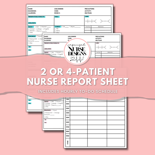 Medical Surgical Nurse Report Sheet with Hourly To-Do List - 2 or 4 Patients