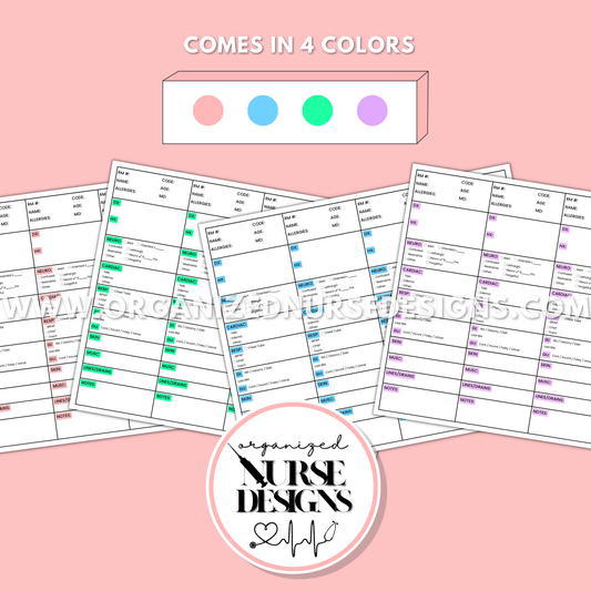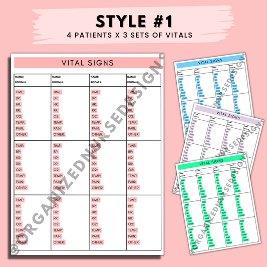 4 or 8-Patient Vital Sign Sheets | Medical Surgical Nurse Report Sheet