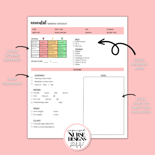 Newborn Nursing Assessment Checklist | Newborn Nurse Report Sheet | OB/Maternity | Postpartum | Labor & Delivery