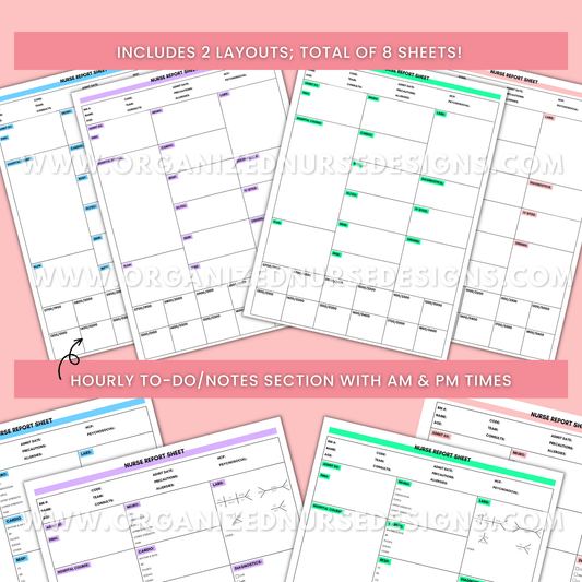 Nurse Report Sheet with Hourly To Do List - 3 & 6 Patient Nurse Brain