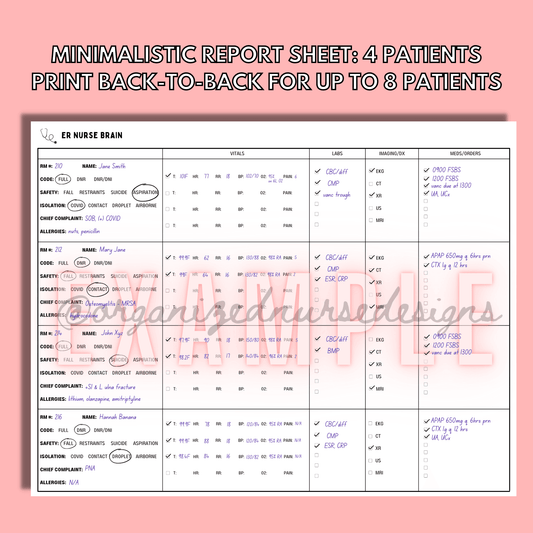 ER Nurse Report Sheet (4 or 8 Patients) | Portrait