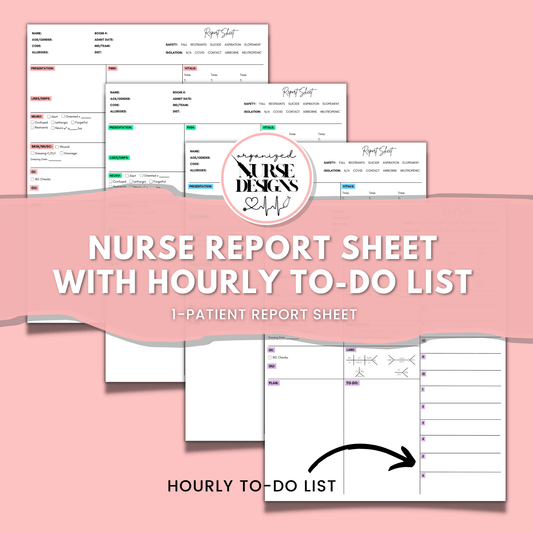 Med Surg Nurse Report Sheet, ICU Nurse Report Sheet, Clinical Nurse Report Sheet with Hourly To-Do Section