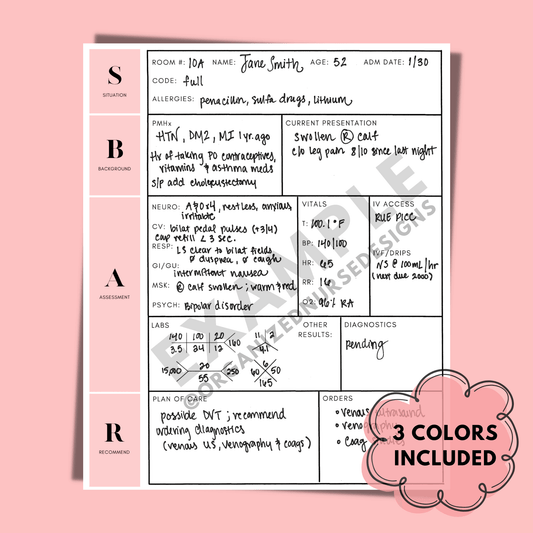 Clinical Nursing School Bundle: SBAR Nurse Report Sheets, Nursing Care Plans & More | 8 Pages